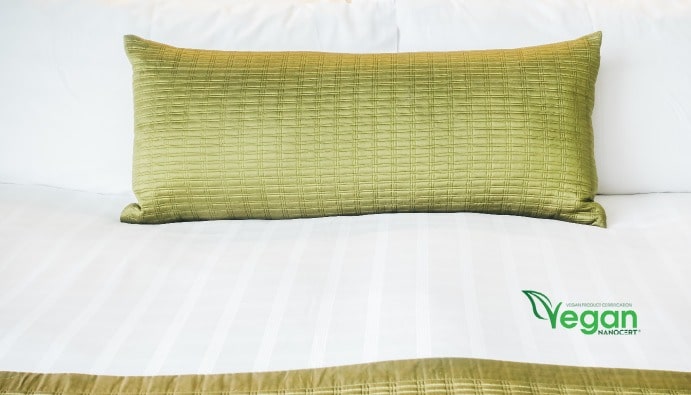 Подушки, которые предпочитают веганы, должны быть маркированы и сертифицированы как веганские. Как Nanocert Vegan Certification, веганская маркировка осуществляется с контролем сырья и проверками текстильных изделий, таких как подушки.